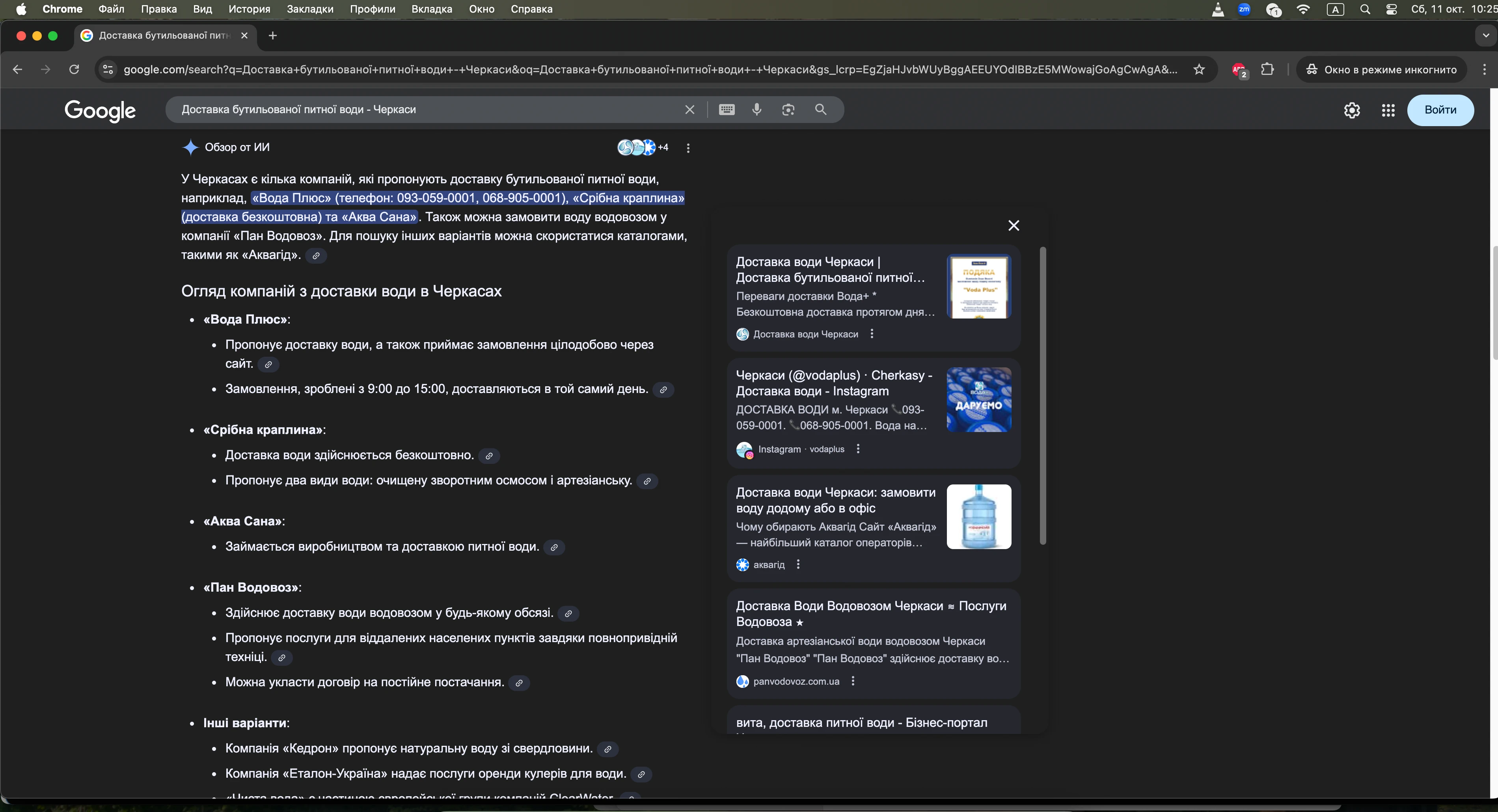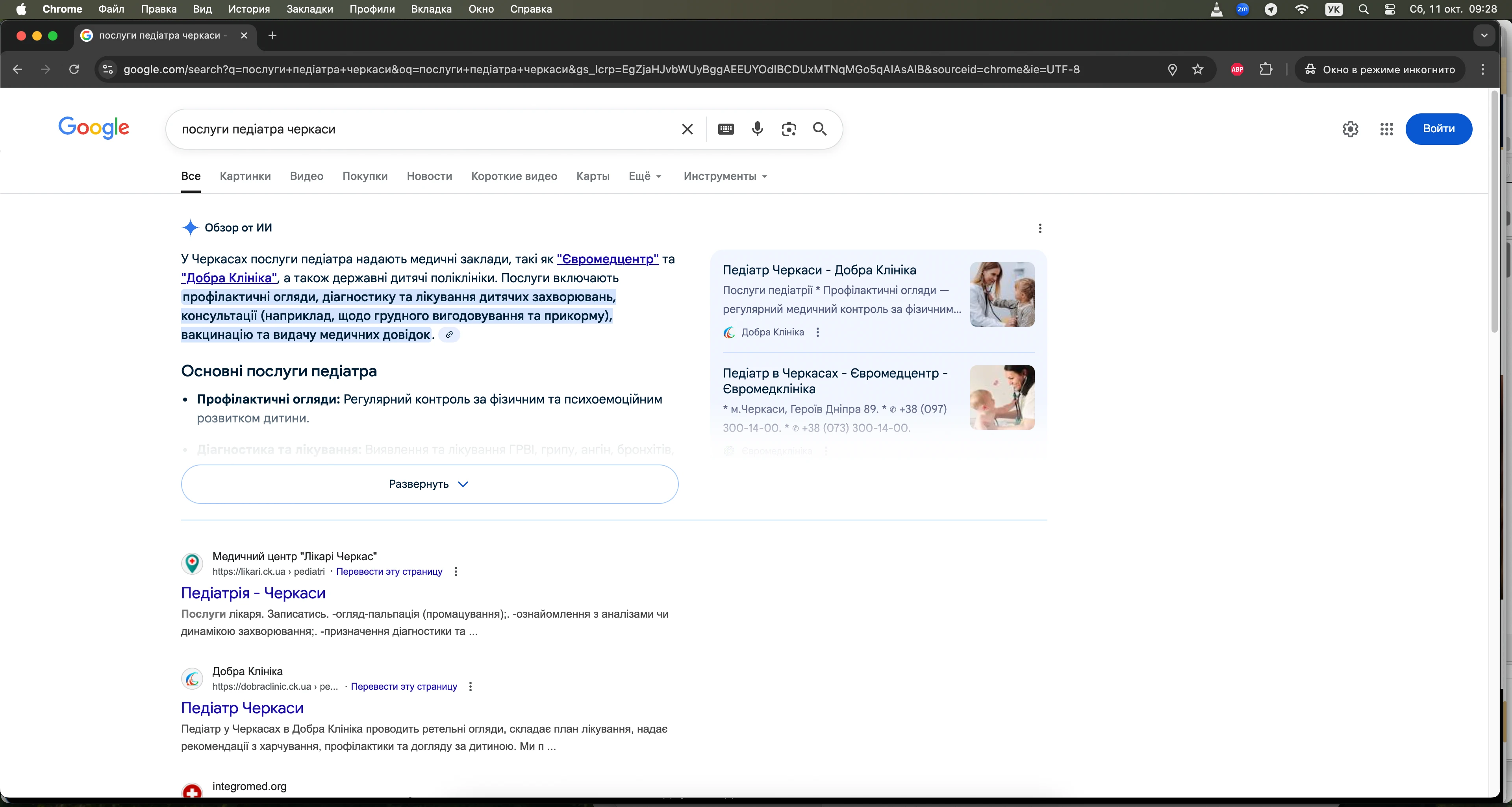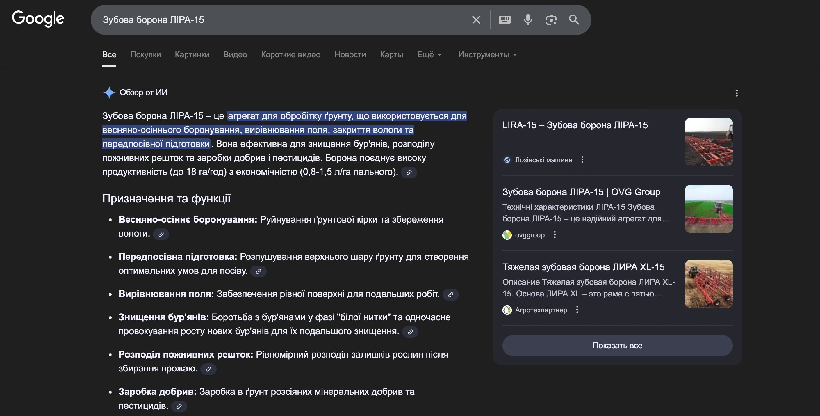 Після проведених робіт: Google AI показує відповіді з сайту клієнта та додає посилання на нього за релевантними запитами.