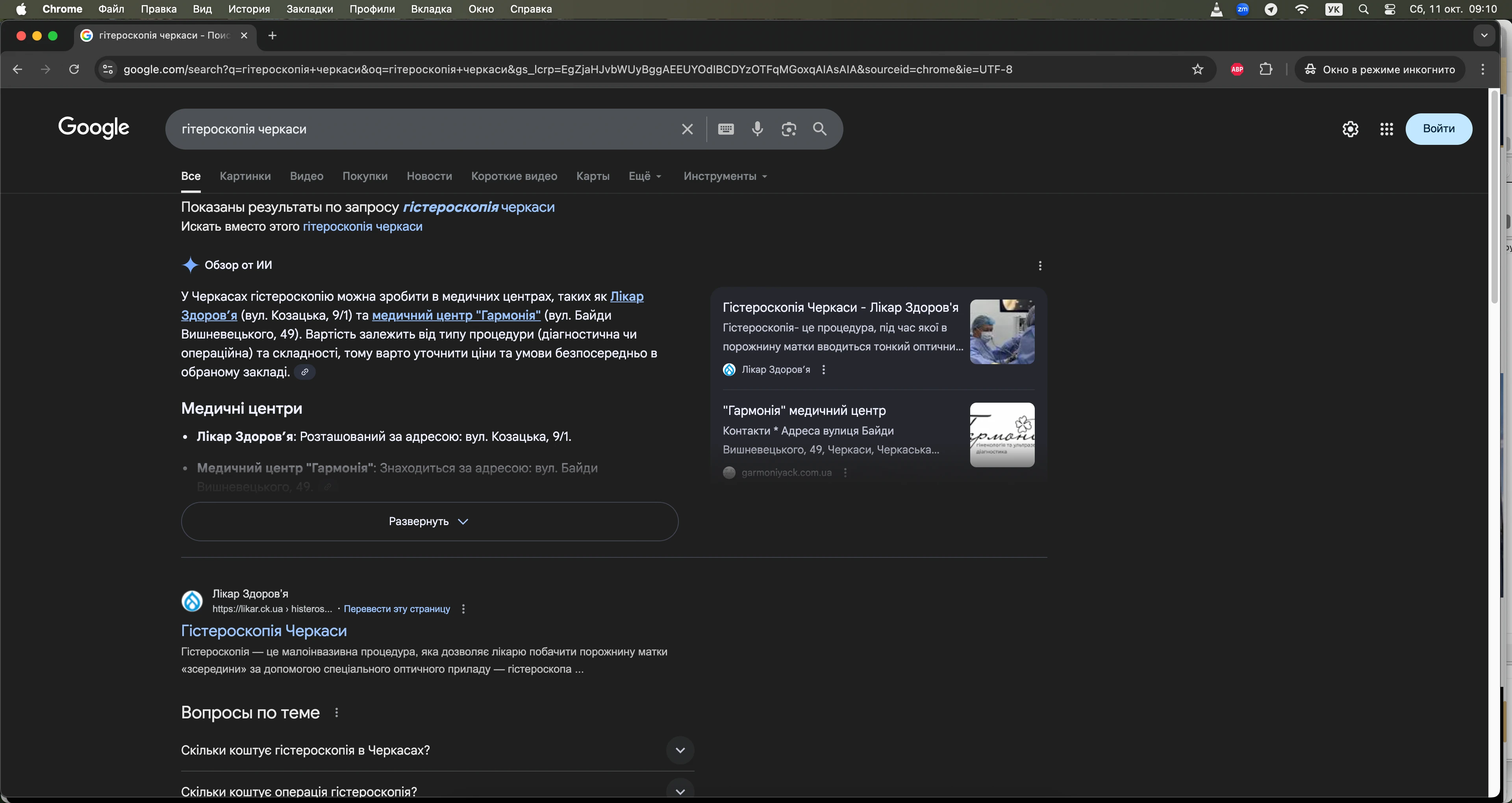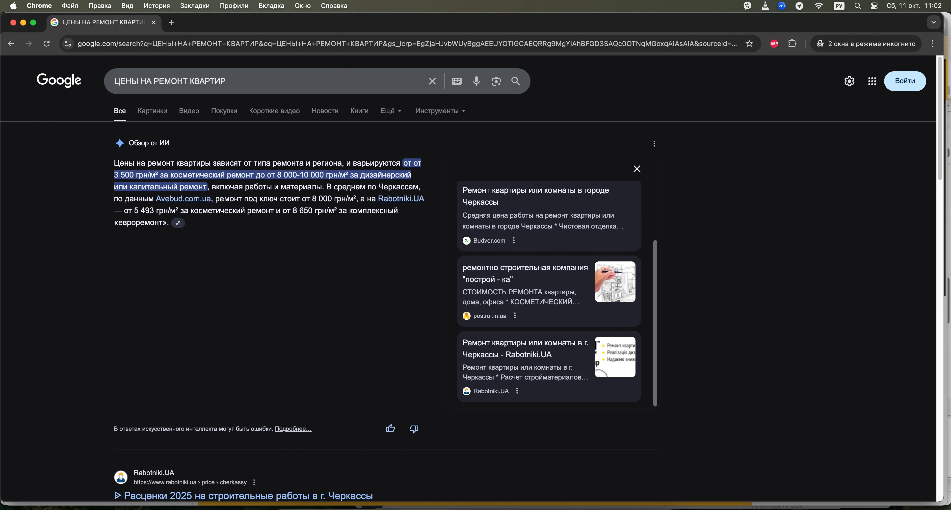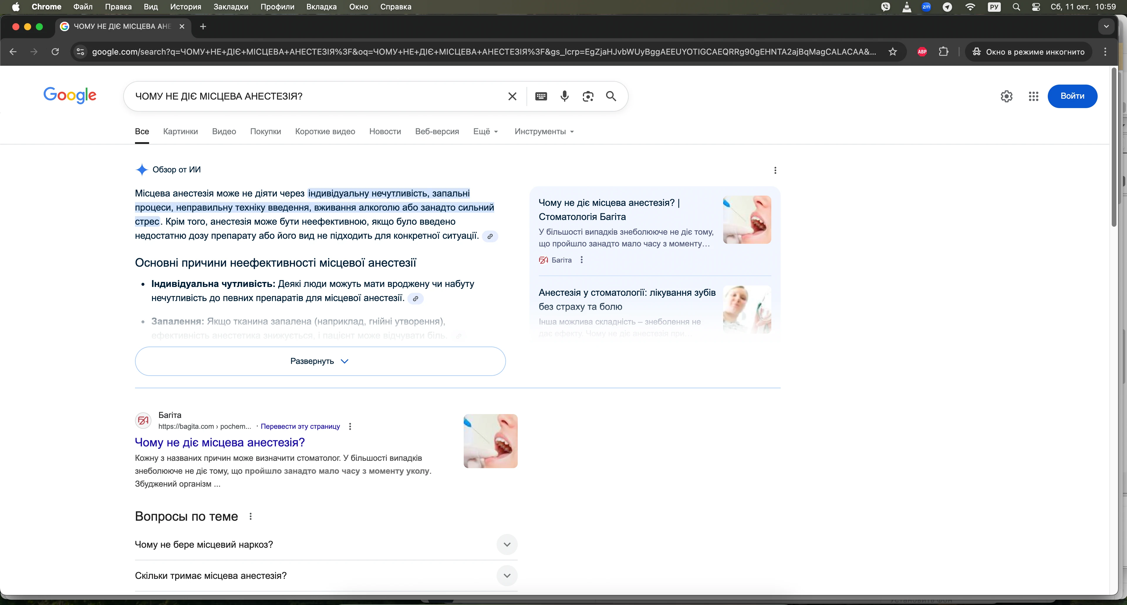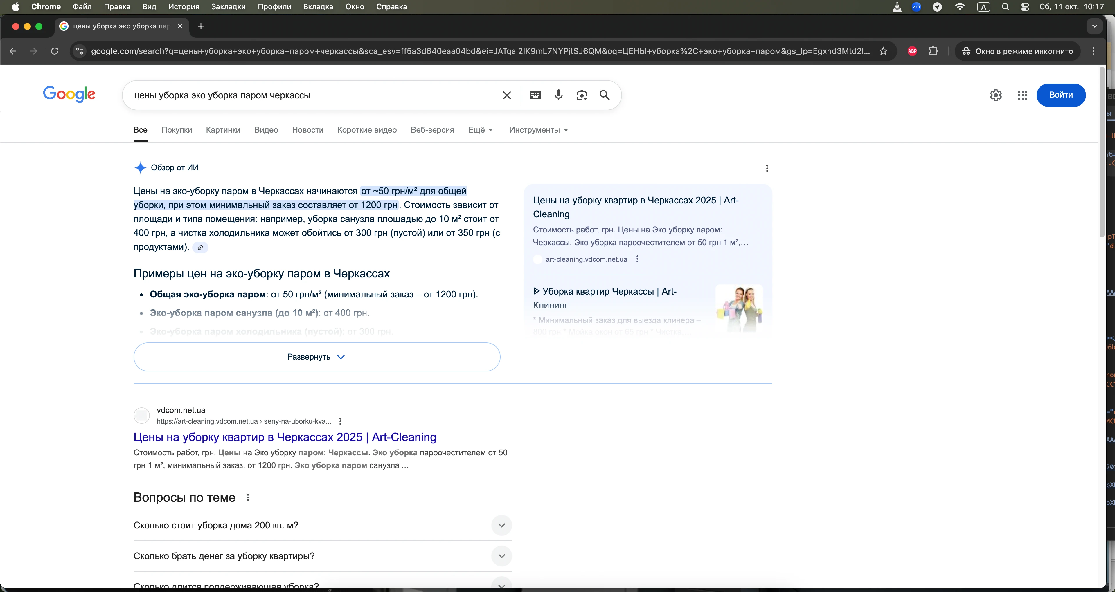 Після проведених робіт: Google AI показує відповіді з сайту клієнта та додає посилання на нього за релевантними запитами.